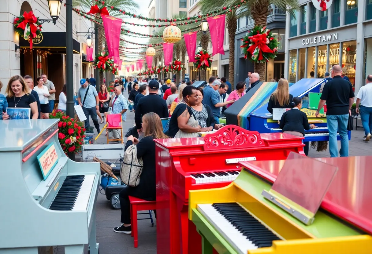 Most remarkable is that these pianos are not just for show; they will stay stationed throughout downtown for the entire month! Yes, that’s right! Anyone wandering through the area can take a seat at these colorful pianos and let their fingers dance across the keys. It’s a perfect chance for aspiring musicians to test their skills or for anyone looking to play a tune and brighten their day.
